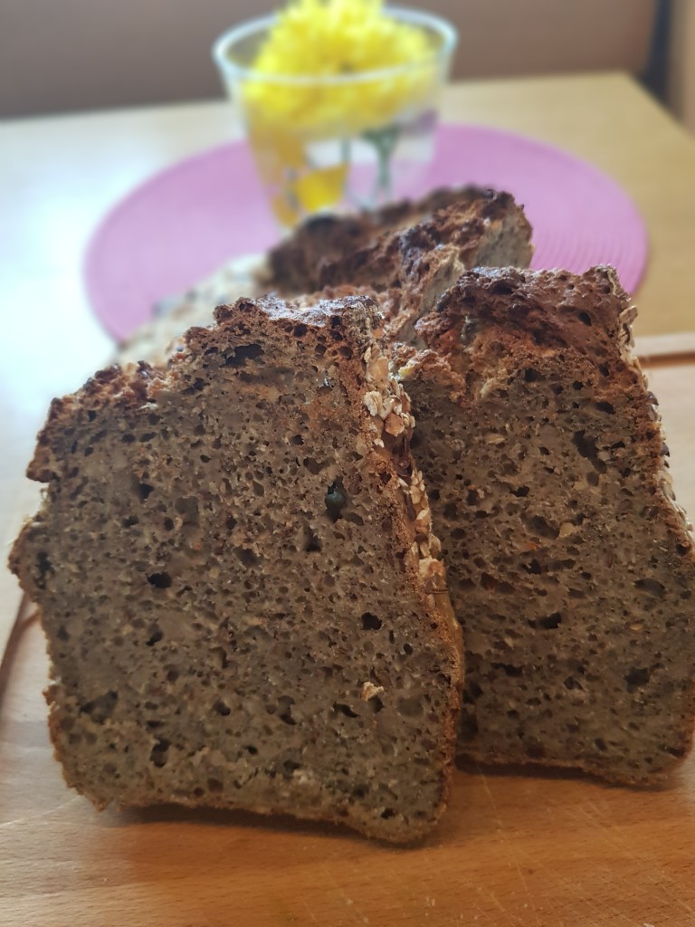 Frische Germ kann man problemlos mit Trockenhefe ersetzen. Außerdem habe ich statt Weizenmehl Hanf- und Buchweizenmehl verwendet.