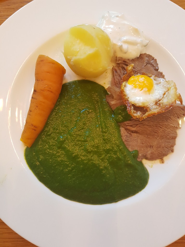 Dazu passen Salzkartoffeln und ein Spiegelei.