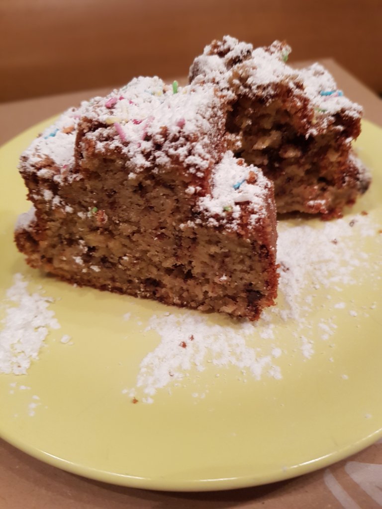 Für die Masse die Äpfel waschen und ungeschält grob reiben. Die Eier mit der Butter und dem braunen Zucker schaumig rühren. Die Mehle, Backpulver, gehackte Schokolade, geriebene Mandeln, sowie die geriebenen Äpfel unterheben. Den Teig in die vorbereitete Form füllen und den Gugelhupf im vorgeheizten Backrohr bei 170 Grad ca. 50 Minuten backen.